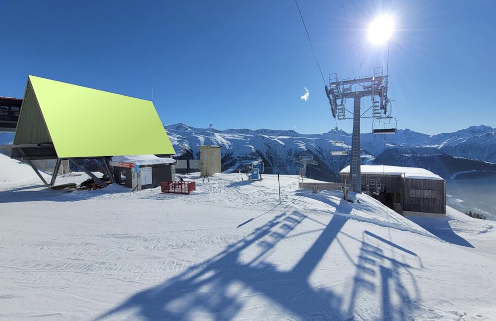 Located at the Richinen mountain station, this double-sided area is a direct eye-catcher for all guests as they get off the chairlift. Visitors here are in the mood for leisure and adventure - ideal for family-oriented brands and outdoor providers. The placement combines visibility with a strong vacation experience.