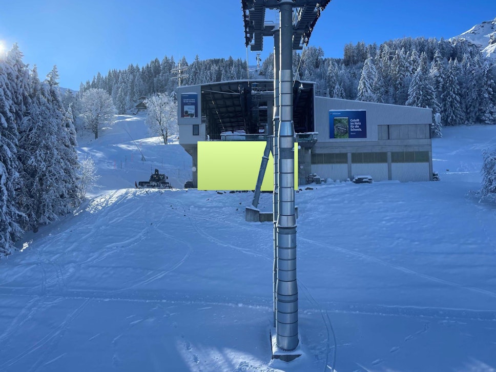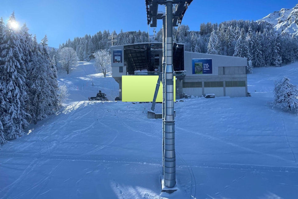At the valley station in Wangs, St. Gallen, sports enthusiasts, vacation guests and other adventure-seekers pass the striking lift tower directly at the entrance and exit. This is exactly where your mural, perfectly positioned, welcomes all visitors to the Pizol ski area and passers-by in the local recreation area.