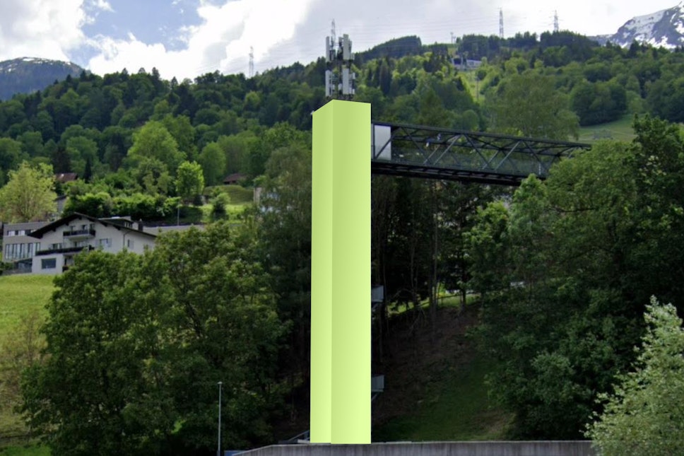 In the middle of the Swiss Alps, in the canton of St. Gallen, the prominent lift tower in Wangs offers a unique advertising space right next to the large parking lot at the valley station. The mural is highly visible for visitors to the Pizol ski area as well as for drivers and passers-by on their approach.